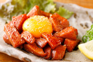当店ぶつぎりたんちゃん丸亀店では「たんトロ炙りユッケ」や「たんトロ炙りステーキ」としてご提供しております。